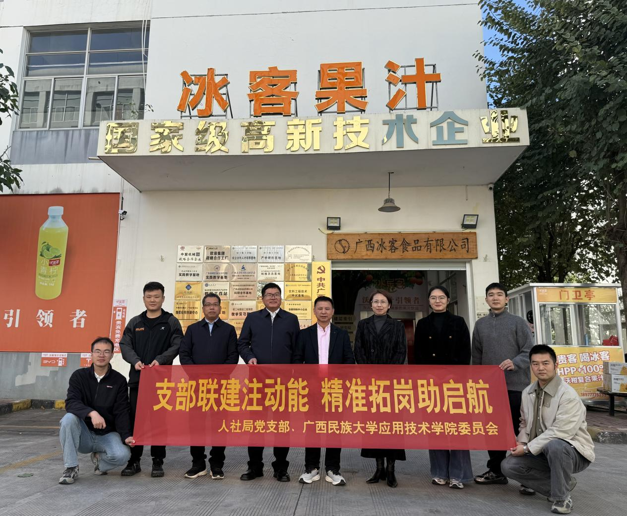 调研组一行与广西冰客食品有限公司负责人、人社局党支部负责人合影留念