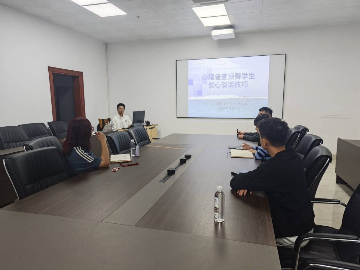 12月4日,bw必威西汉姆联心理普查预警学生谈心谈话技巧专题培训在武鸣校区信息楼301会议室举行,思源湖校区全体辅导员线上参与。