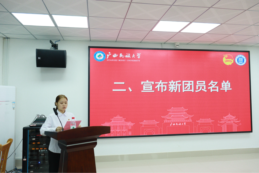 入团仪式在激昂的国歌声中拉开序幕,全体师生庄严肃立,唱响国歌。随后,学院团委学生副书记余春勤同学宣读新团员名单。