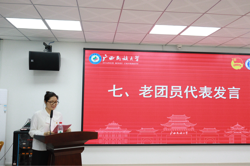 老团员代表农仪华同学回顾了自己在共青团组织中的成长经历,鼓励新团员们珍惜青春时光,牢记入团初心,在共青团这个大舞台上锻炼自己,实现人生价值。