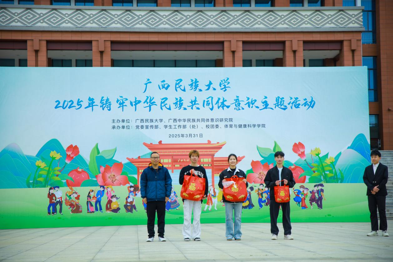 3月31日上午,学校2025年铸牢中华民族共同体意识主题活动在相思湖校区、武鸣校区联动举办。我院师生积极参与,体验壮美广西三月三少数民族文化,为春日的校园增添了独特的民族文化色彩。