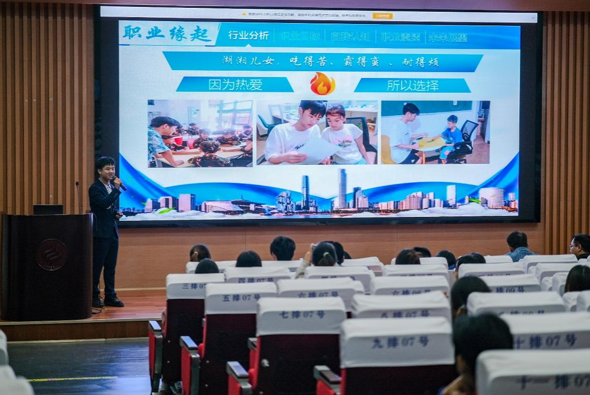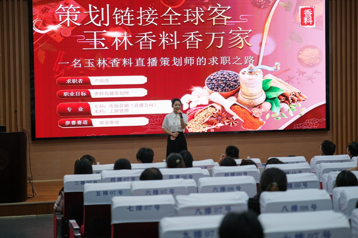 参赛选手依次登台,结合个人专业与实践经历,以PPT演讲的形式,清晰阐述短期目标、长期蓝图、岗位技能及提升路径,凸显自身岗位适配性,展示职业规划。