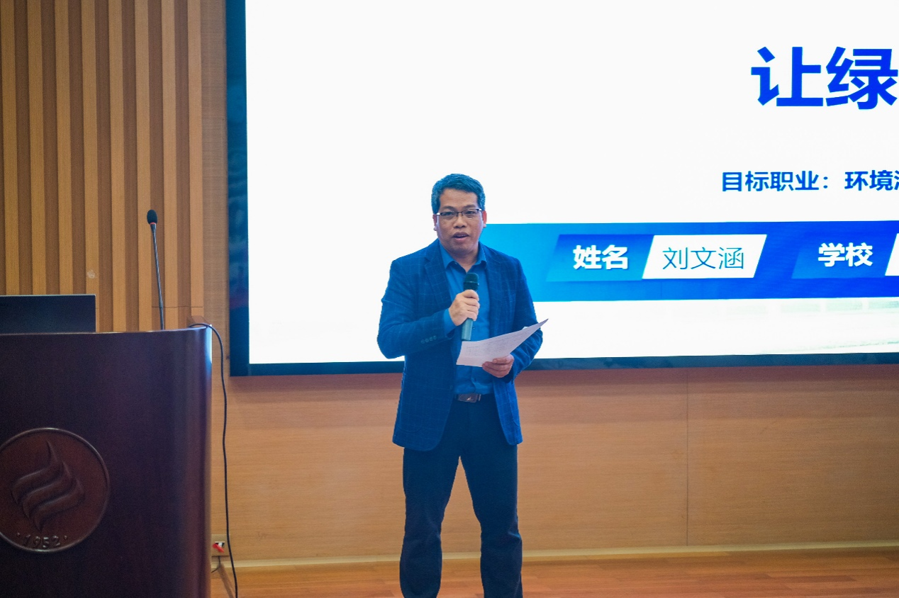 学院党委副书记陆进强作总结发言,通过精准点评选手表现,既树立了优秀榜样,也清晰揭示了职业规划中需规避的误区与应努力的方向。