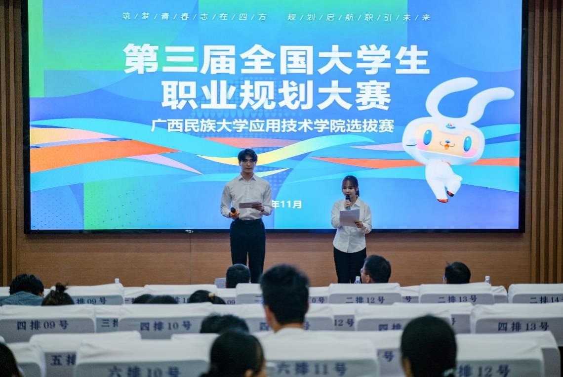 11月13日,第三届全国大学生职业规划大赛bw必威西汉姆联选拔赛决赛在武鸣校区椭圆形报告厅举办。本次比赛设求职综合展示和现场答辩两个环节,经过学生报名、班级推荐、学院初审等环节,共有10位选手进入决赛。