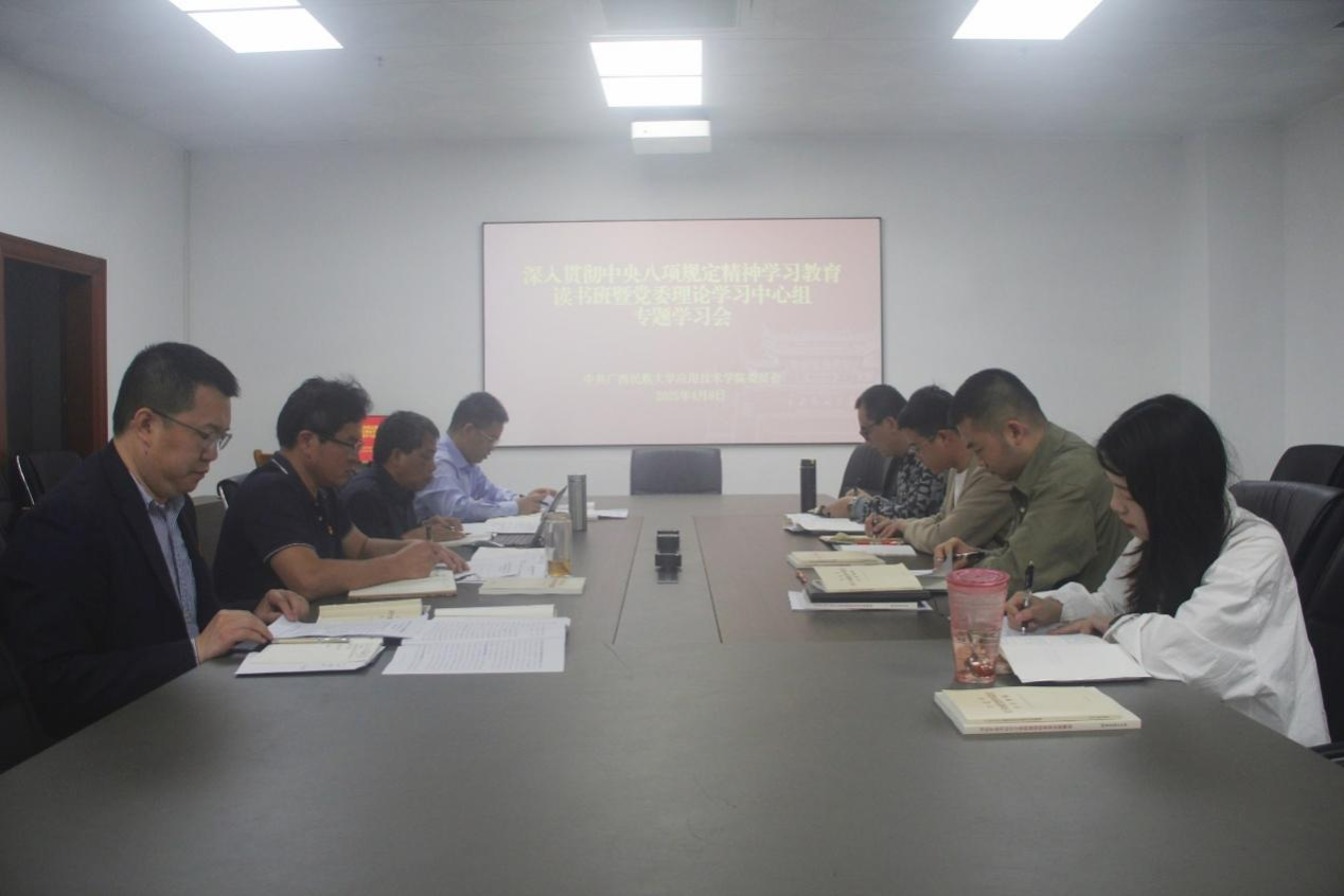 4月8日全天,bw必威西汉姆联深入贯彻中央八项规定精神学习教育读书班暨党委理论学习中心组专题学习会在武鸣校区信息楼301会议室举行。学院领导班子成员参加学习,学院办公室等有关人员列席会议。