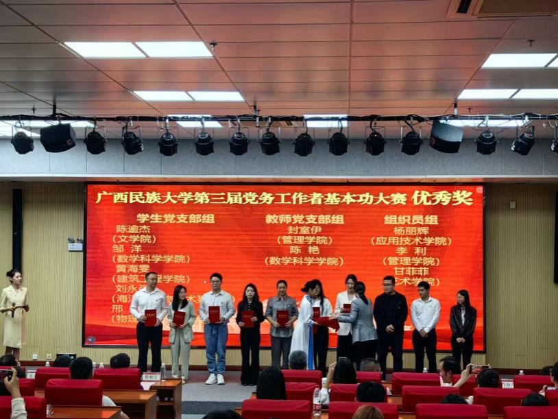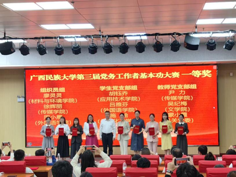 11月8日,广西民族大学第三届党务工作者基本功大赛在相思湖校区顺利举行,我院胡钰乔老师荣获大赛学生党支部书记组一等奖、杨丽辉老师获大赛组织员组优秀奖。