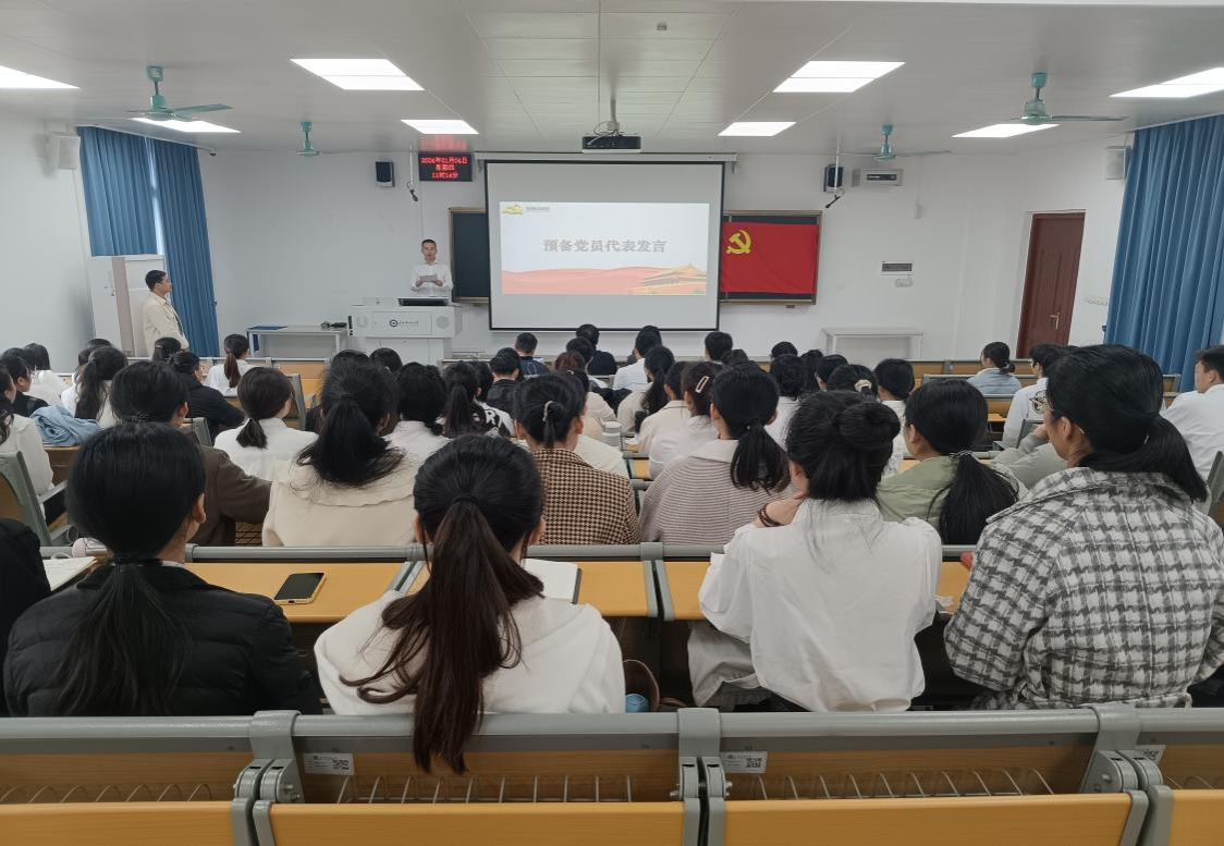 第一项议程奏唱国际歌,这不仅是对历史的回顾,更是对未来的展望。第二项议程宣布了杨善强等58名预备党员名单,第三项议程由我院党委副书记吴雄祥同志带领预备党员进行了庄严入党宣誓。