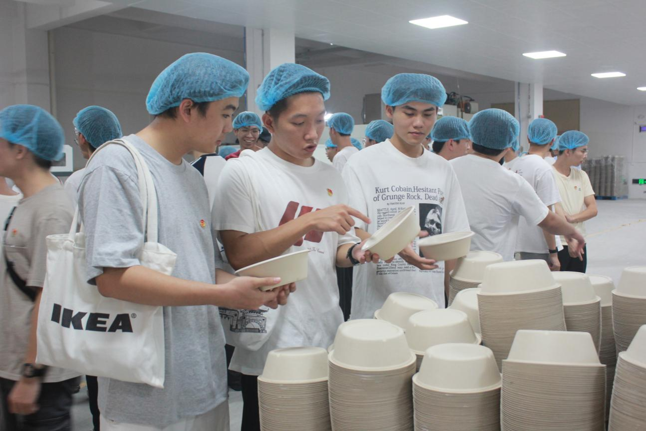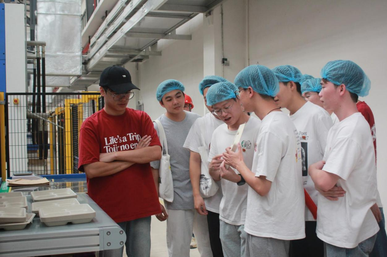 同学们实地参观企业的自动化生产线,重点观摩了智能制造技术在原材料处理、成型、包装等环节,对环保纸模材料的生产应用有了直观的认识。