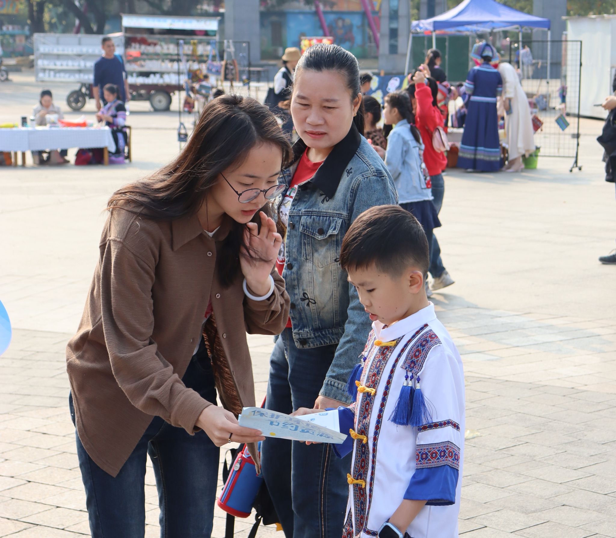 青年志愿者向群众进行宣传普及