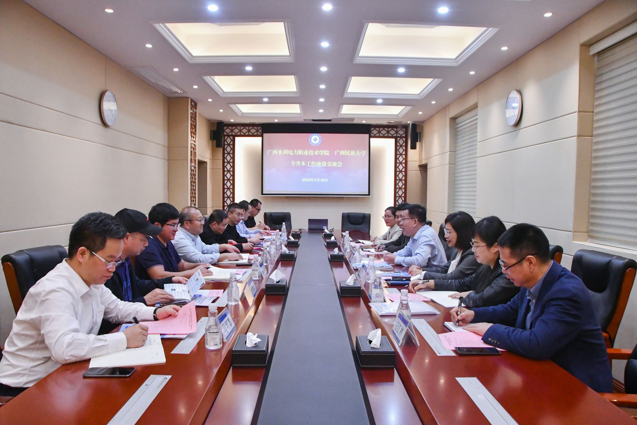 李林简要介绍广西水利电力职业技术学院的专升本和生源情况。他希望民大在专升本招生培养上给予大力支持,为水利电力的学子提供更多优质的学习资源。两校可共同创新中外办学模式,加强工科专业合作,扩大就业规模,共同打造出两校合作的新亮点、新特色。