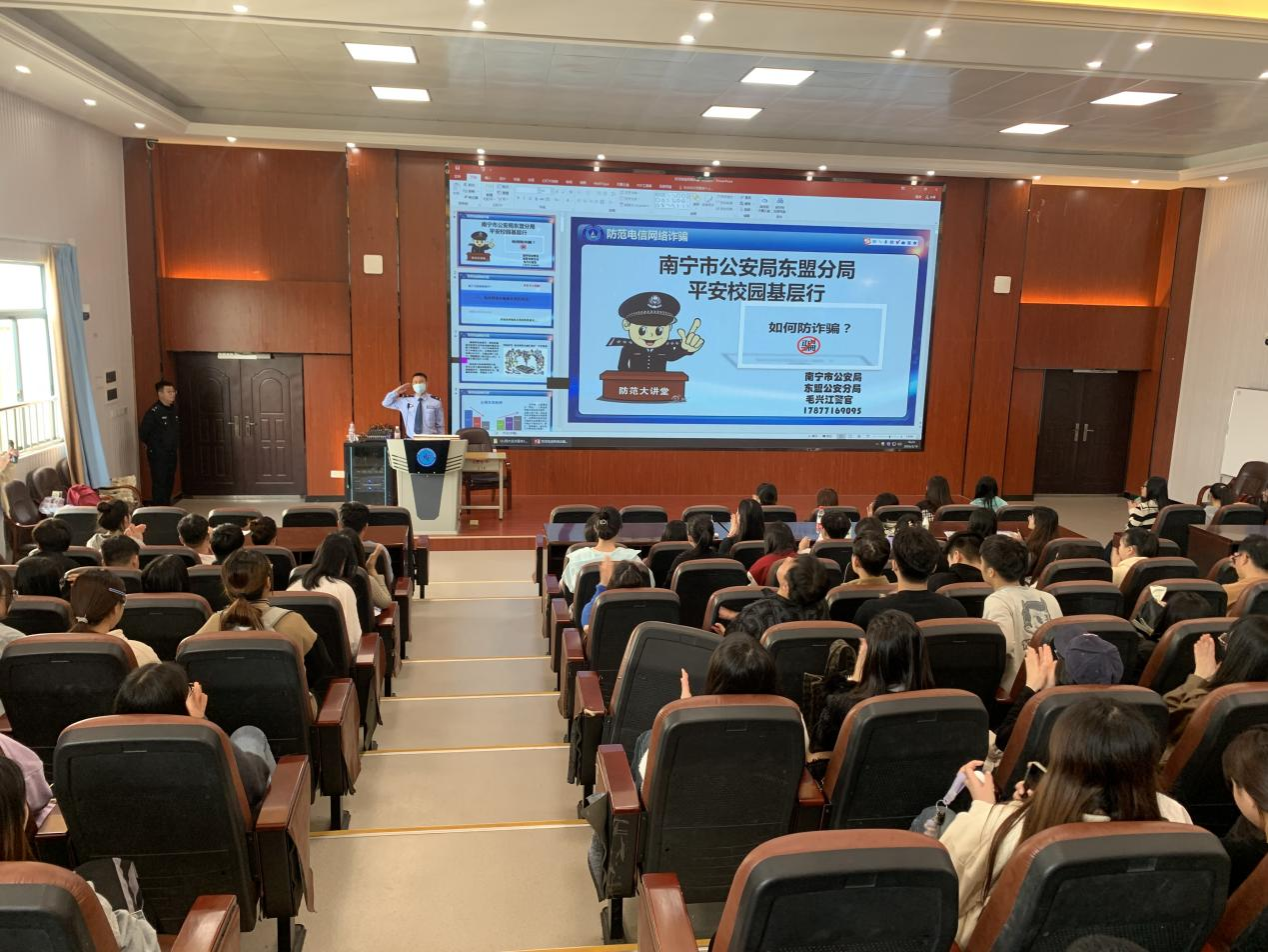 3月19日下午,bw必威西汉姆联在里建校区教学楼报告厅开展“反诈同心,你我同行”防范电信网络诈骗主题讲座,辖区民警毛兴江警官主讲,学院260名师生参加讲座。