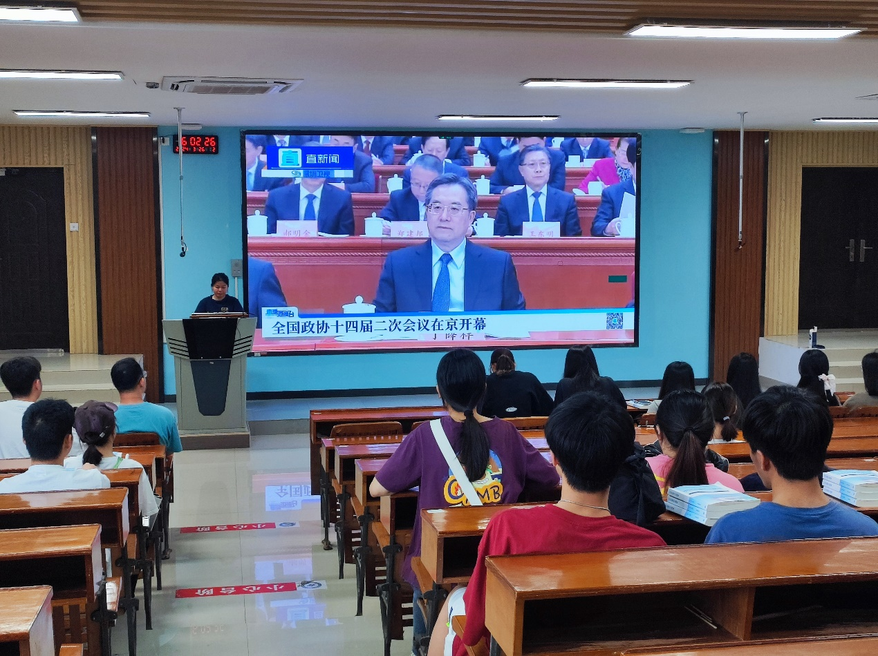 会后,各带班辅导员认真落实工作要求,组织同学们通过线上线下相结合的方式开展“学习贯彻全国两会精神”主题班团会。同学们以观看两会视频,阅览政府工作报告等形式,深入学习全国两会精神。