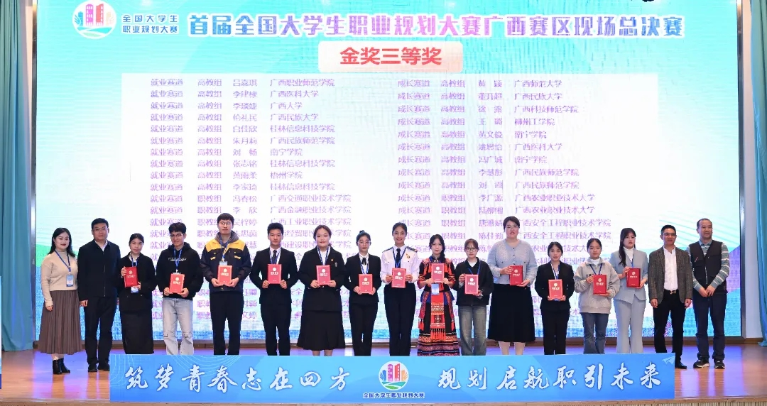 3月13日,首届全国大学生职业规划大赛广西赛区现场总决赛在广西师范大学举行。本次比赛以“筑梦青春志在四方,规划启航职引未来”为主题,经过学院初赛、学校选拔赛、自治区网络复赛等环节,共有来自全区34所高校81名选手进入现场总决赛。我院2023级智能制造工程(专升本)02班伦礼民同学在现场总决赛中荣获金奖三等奖。
