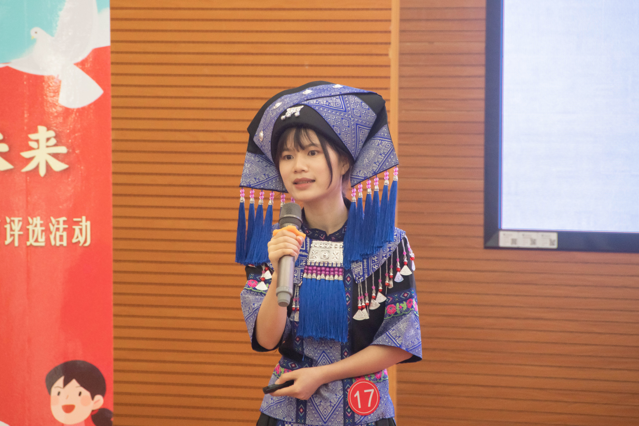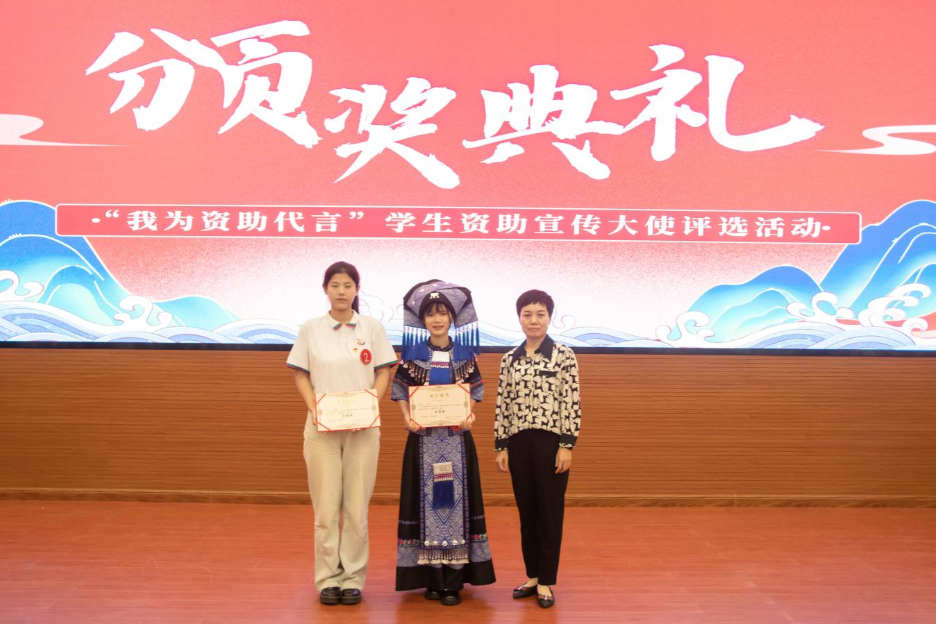 本次比赛设资助政策宣讲和资助政策问答两个环节。比赛中,黄桂芬同学以《苔花如米小,也学牡丹开》为主题,声情并茂地讲述了自己在国家资助政策的帮扶下一路披荆斩棘,从辍学到复学、从中职到本科的成长历程。她富有感染力的表现以及发自内心对国家资助的感恩之情获得了现场评委和观众的一致认可。