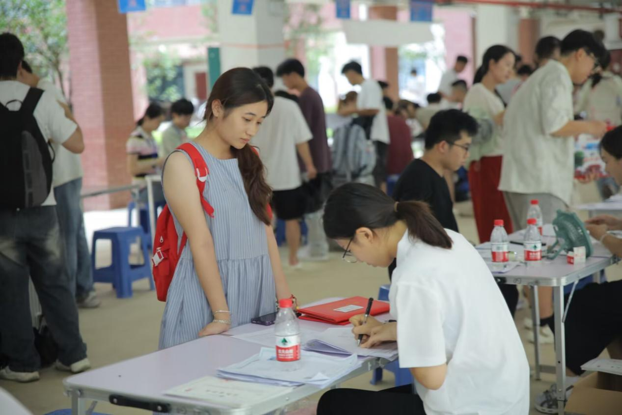 志愿者们满怀热情地帮助新同学完成每一项报到流程,各环节平稳有序,高效流畅。