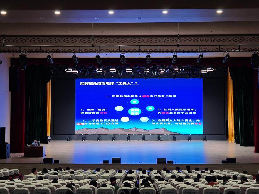 10月21日,学院新生安全教育与防诈骗教育讲座在武鸣校区图文中心大礼堂举办,南宁市公安局驻广西民族大学联络官韦振豪警长主讲,学院全体2025级新生参加。