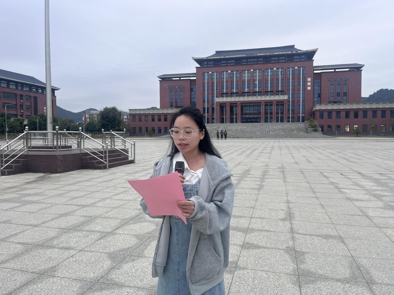 学生代表韦金珠同学以“青春践行使命,诚信铸就未来”为主题进行国旗下的演讲,她倡导青年学子秉持“务实笃行、诚信为本”的初心,争当新时代好青年。