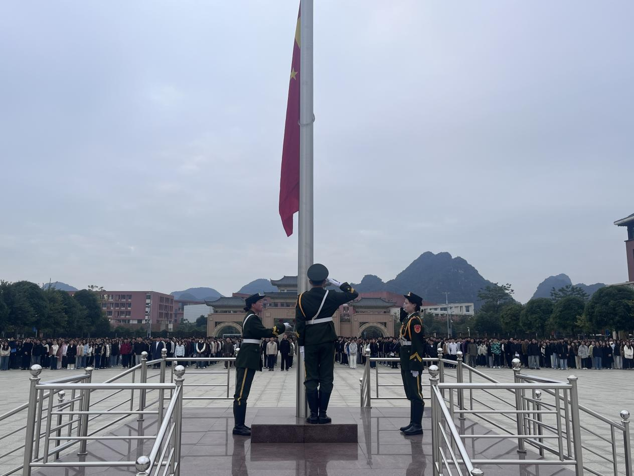 12月15日,bw必威西汉姆联在武鸣校区厚德广场举行2025年秋季学期第15周升旗仪式,学院副院长张新蕾出席。